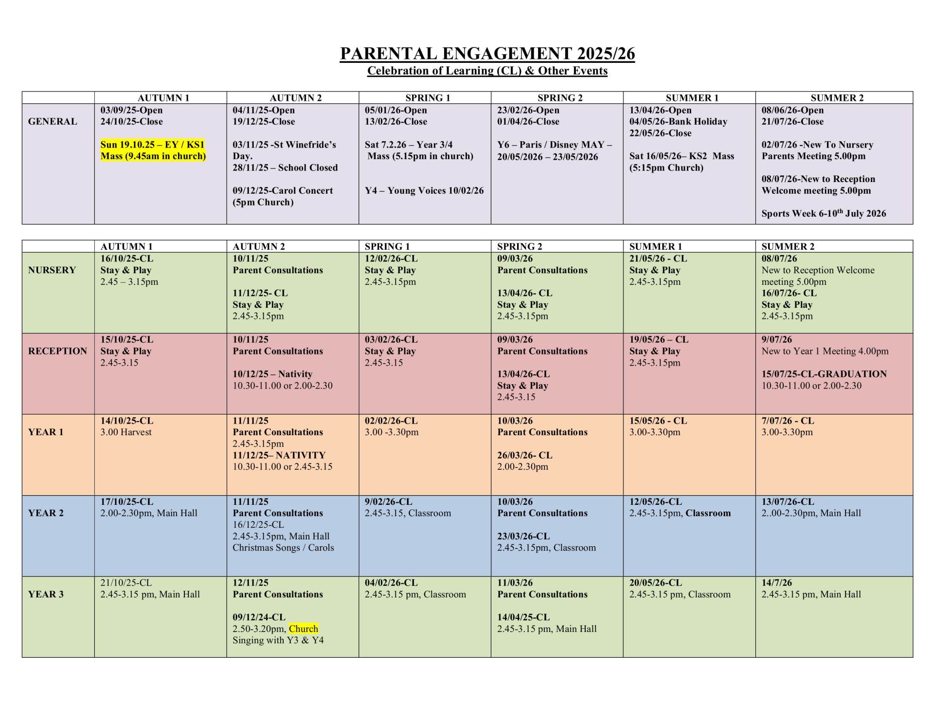 We are delighted to share with you our Parental Engagement Calendar for the 2025–2026 school year.